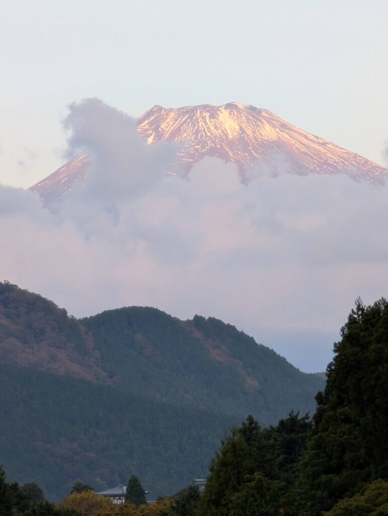 そして翌朝、窓の外には朝焼けの富士山がドーンと鎮座していた。