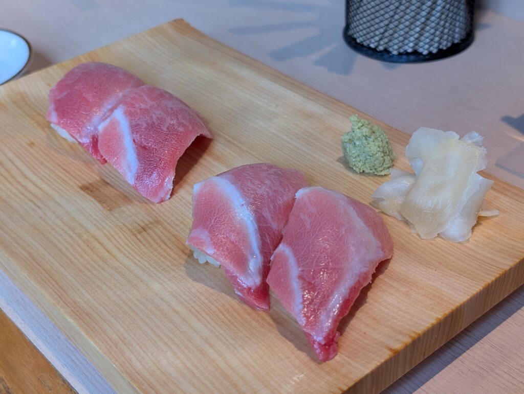 お寿司、海鮮串、和牛、そしてデザートのフルーツ。