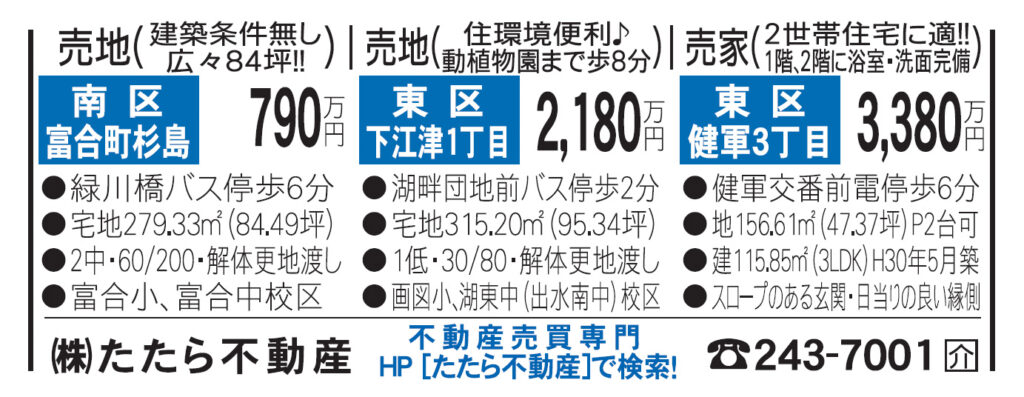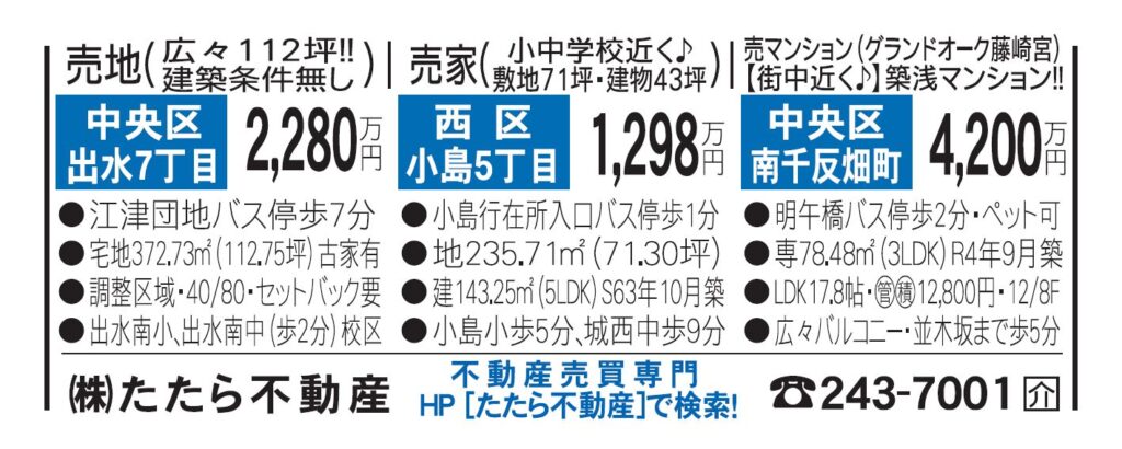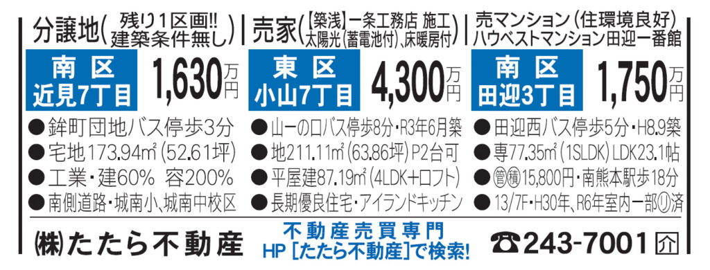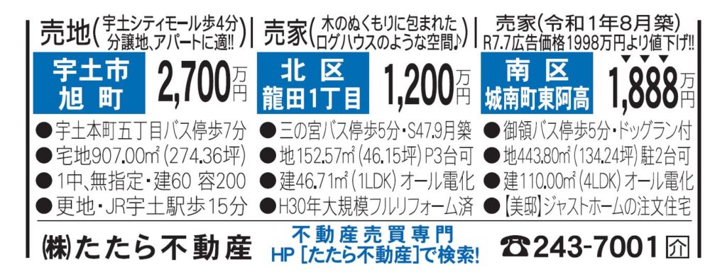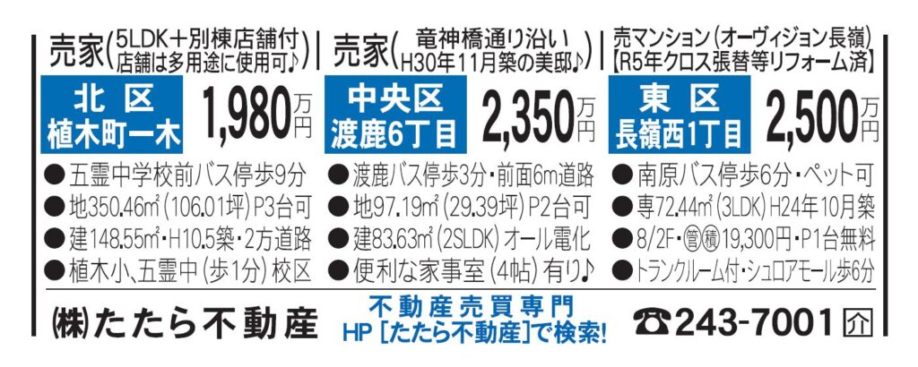 たたら不動産が厳選した新着物件や、見逃せないお値下げ物件など、