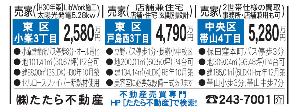 たたら不動産が厳選した新着物件や、見逃せないお値下げ物件など、