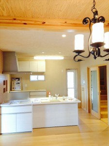 開放的なカウンターキッチン越しに見える木と塗り壁の調和・・・あったかい感じがしますね♪