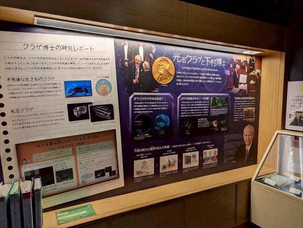 数十種類のクラゲが展示され、2008年にノーベル化学賞を受賞された下村博士が名誉館長を務める、
