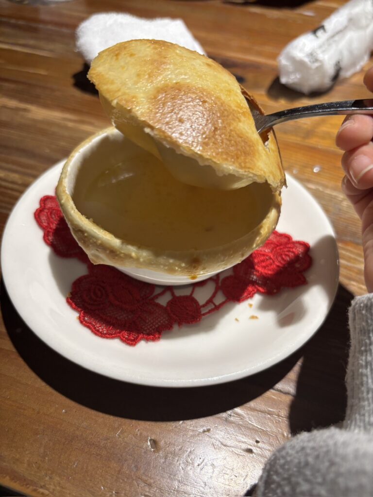 一押しはきのこスープで上部にあるパイ生地と一緒にスープを食べると、