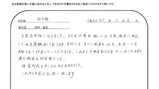 担当の前田様には、大変誠実に対応して頂き感謝致しております。【HS様】