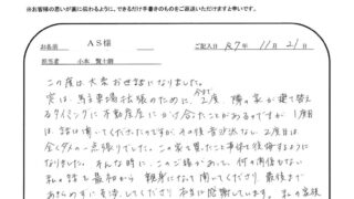 最初から最後迄、大変お世話になりました。【(カ)MK K様】