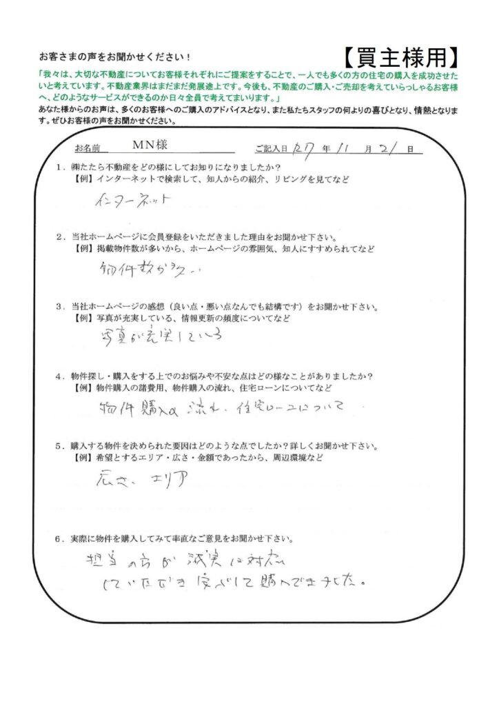「 担当の方が誠実に対応していただき、安心して購入できました。【MN様】」