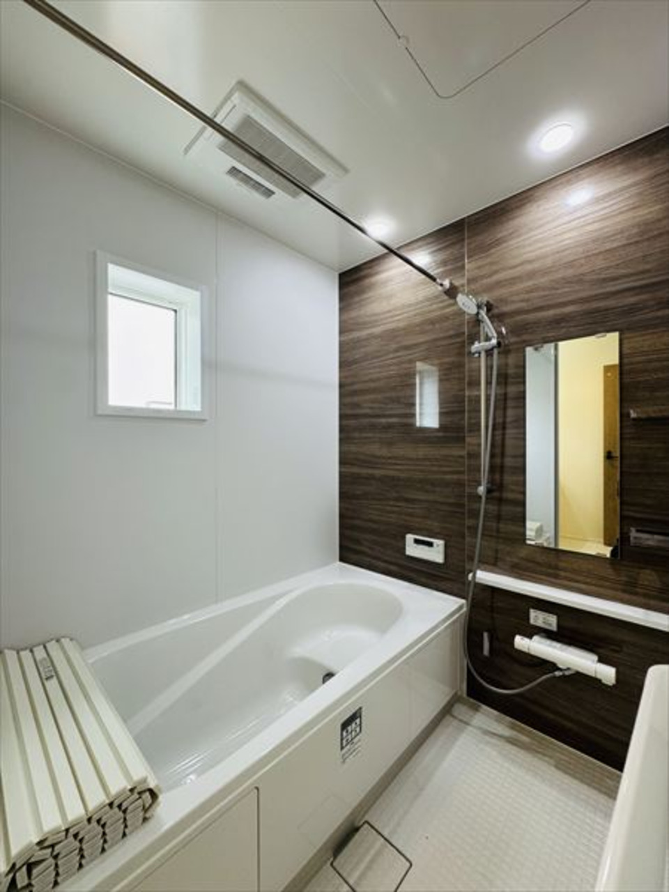 カウンターキッチン、システムキッチン、浴室乾燥機、オートバス、追焚機能、シャワー付洗面化粧台、温水洗浄便座、トイレ2ヶ所、全居室収納、ウォークインクローゼット、クローゼット、床下収納、モニター付インターホン、ダブルロックドア、省エネ給湯器、上水道、下水道、都市ガス、電気、複層ガラス、駐車場2台分、外壁サイディング、バス1坪以上、24時間換気システム |