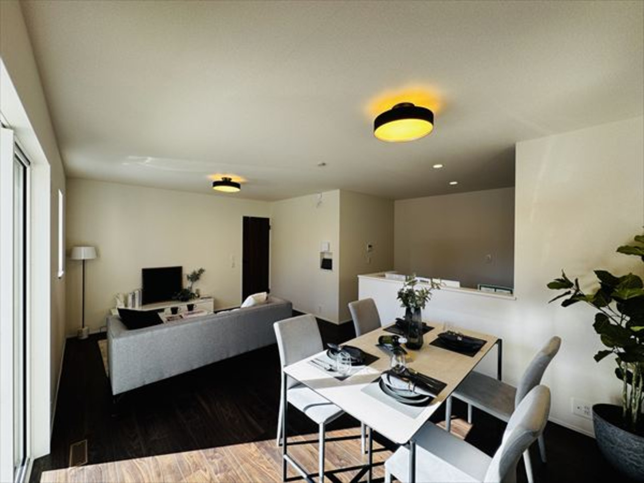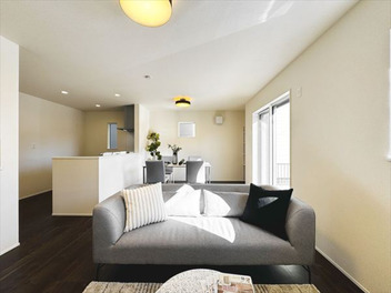 17.25帖の広々としたLDKは、ダイニングセットやソファを置いても圧迫感のないゆとりの空間。