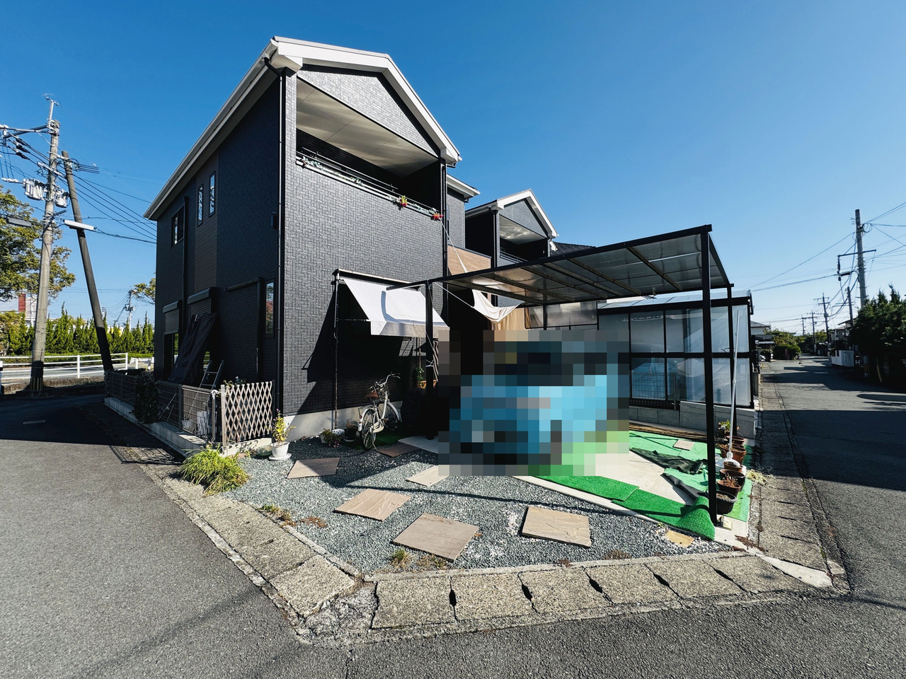 屋根付きカーポートがあるので、雨の日も濡れずに乗り降りできます。