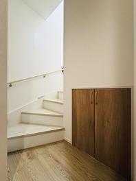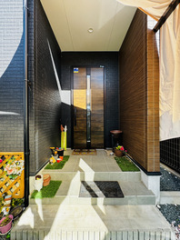モダンな雰囲気と快適さが両立した玄関まわり。