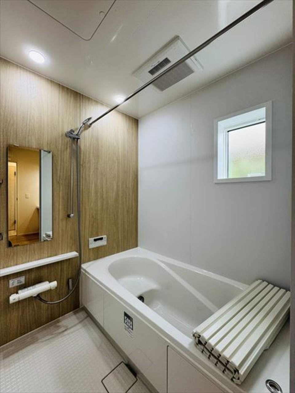 浴室暖房、浴室乾燥機、オートバス、追焚機能、高温差湯式、シャワー付洗面化粧台、温水洗浄便座、トイレ2ヶ所、浴室に窓あり、カウンターキッチン、システムキッチン、浄水器、3口以上コンロ、グリル、全居室収納、クローゼット、床下収納、モニター付インターホン、カードキー、ディンプルキー、ダブルロックドア、シャッター雨戸、省エネ給湯器、全居室フローリング、上水道、下水道、都市ガス、電気、庭、ワイドバルコニー、ルーフバルコニー、人感センサー付照明、ダウンライト、火災警報器(報知機)、複層ガラス |