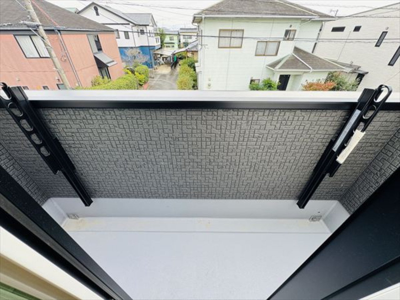 南向きのバルコニーは陽当たり良好で、洗濯物も気持ちよく乾きます。