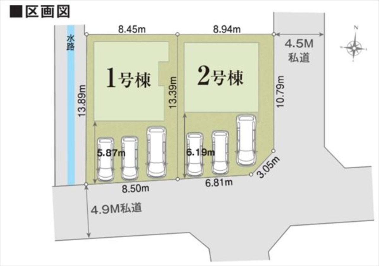 角地 方向:南 種別:私道 幅員:4.9m 間口:8.5m 方向:東 種別:私道 幅員:4.5m 間口:-- |
