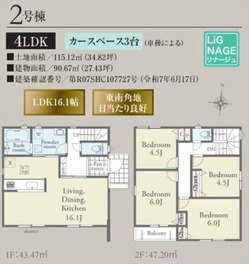※上記物件情報は2号棟のものです。(建築確認番号:第R07SHC107727号)
