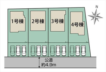 一方 方向:南 種別:公道 幅員:4.9m 間口:-- |