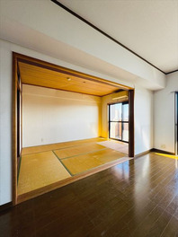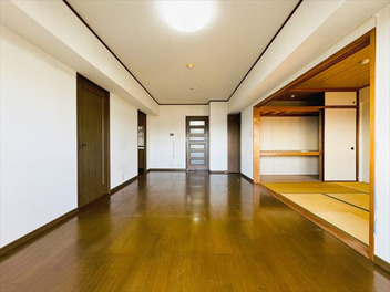 リビング横には和室があり、お子さまやご高齢の方もゆったりくつろげる空間。