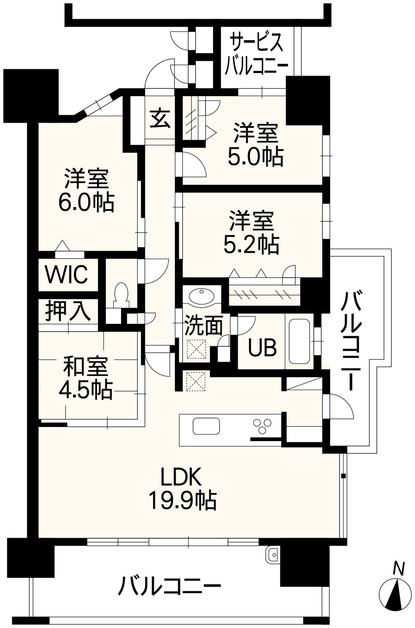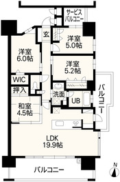 約19.9帖の広々としたLDKに洋室が3部屋あり、ご家族みなさんがゆったり過ごせる住まいです。