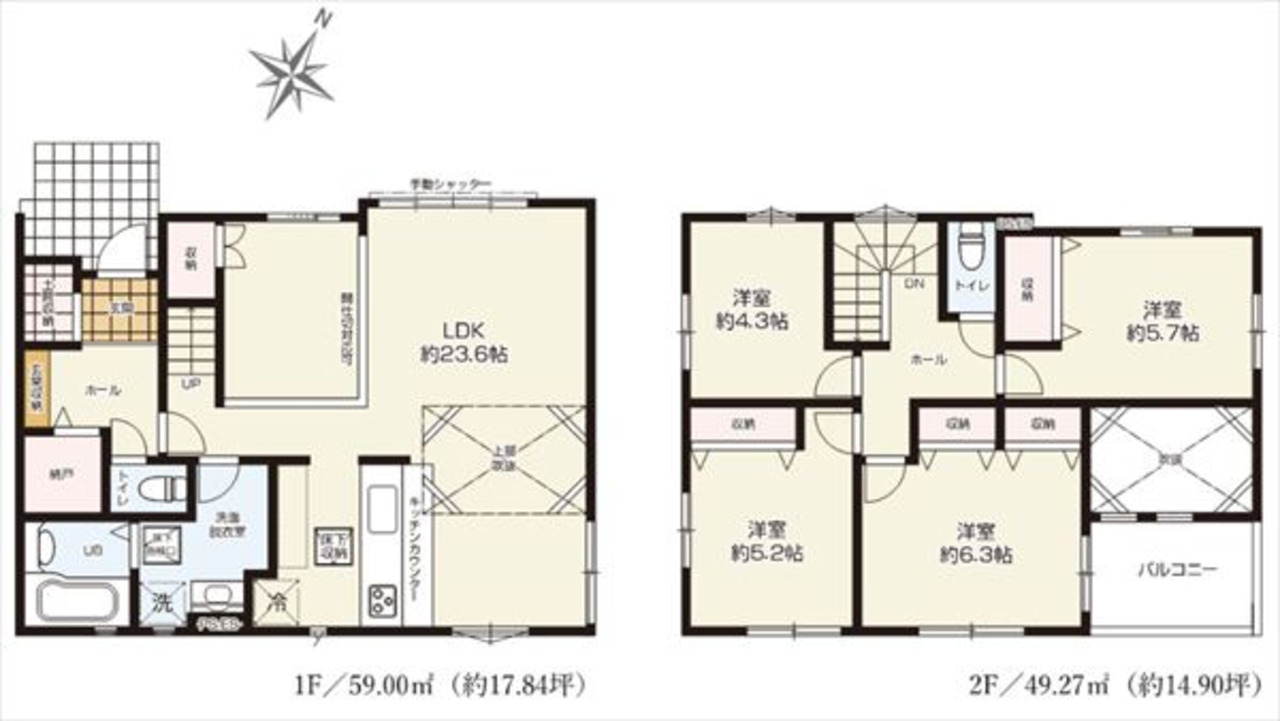 2階には洋室が4部屋あり、全居室に収納を完備。