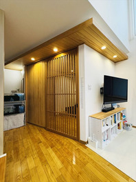 さらに、随所に採用された特注建具が空間全体の質を高め、高級感と落ち着きを演出。木の温もりに包まれた、上質で品のある住空間が広がります。