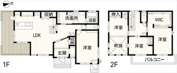 2階の主寝室には大容量のウォークインクローゼットを完備。