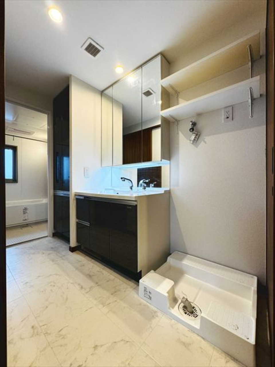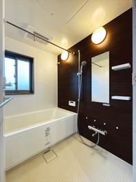 浴室乾燥機・追焚機能・浴室に窓を備え、洗面室にはシャワー付洗面化粧台を設置。