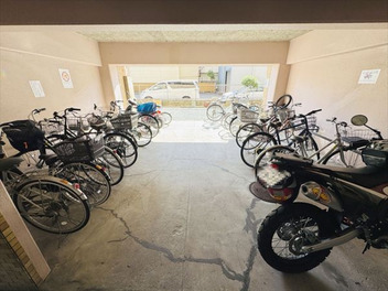 シャワー付洗面化粧台、温水洗浄便座、オープンキッチン、システムキッチン、3口以上コンロ、バイク置き場、収納スペース、室内洗濯機置場、オートロック、全居室フローリング、駐輪場、ダウンライト、エレベーター |